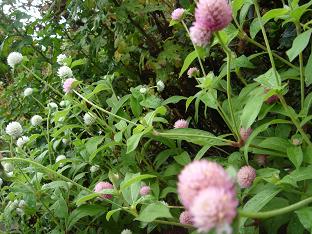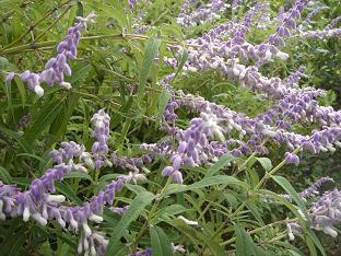 草丈1mにも成長します。青紫色で綿につつまれたような花が秋に咲く。